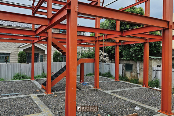 鋼構屋現場前置作業很精實,鋼構材料都在工廠內製作完成,再來靠得就是營造廠施工的綿密度!而營造廠找哪一個下包廠商實在很重要,如何規範眾多師傅們,是否能照圖施工?施工精緻度與效率如何?這些不僅僅只靠營造廠,還需靠設計師縝密的安排,與營造廠商的討論,也真實考驗著雙方的默契!!才能一步一步的將架構搭建完成!!