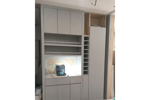愛這樣分享之前有分享過,師傅在木作上漆前,針對木作冷烤工程,師傅在上漆前,會先利用土磚色的補土,現在透過師傅的巧手, 木櫃、電視牆面、抽屜已經上色完畢囉!!木作材質經過多次上漆後,表面光滑、具有抗水性,顏色飽和度高不易掉色。