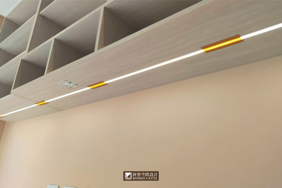 愛這樣設計燈帶不僅僅只是作為裝飾性、營造氣氛,大型衣櫃或更衣室的收納層板,玄關、浴室鏡子、此案場主要都是使用燈帶當主燈使用,與以往將其設計作為配置方式不同。條燈最大的優點是體積小、客製化程度高,可以自由調整尺寸、瓦數、色溫與發光角度,可根據業主需求打造理想的照明效果,軟條燈光柔和又能均勻照射,直接讓整體的空間充滿寧靜、溫暖和自然的感受。