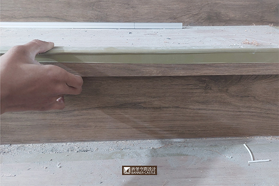 說到這麼多現代化的樓梯燈,但會藏在記憶裡最暖心的還是具有溫度的設計,所以設計師在樓梯的踏面上,使用仿木的磁磚,並在踏板下方暗藏燈帶,靠牆的扶手處也崁進了登條,並在樓梯扶手做了些變化,將整片玻璃鑲在木作底座中,玻璃的通透性讓整座樓梯氛圍感整體提升,更增加了採光度,由於燈光的顏色也可以變換,一種溫馨又充滿時尚的設計,讓同樣也是被普遍使用的一種樓梯照明方式變#老屋翻新