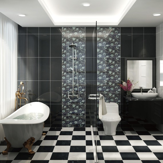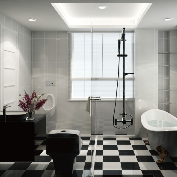 愛這樣設計-浴室3D渲染|白黑相間復古風瓷磚花紋